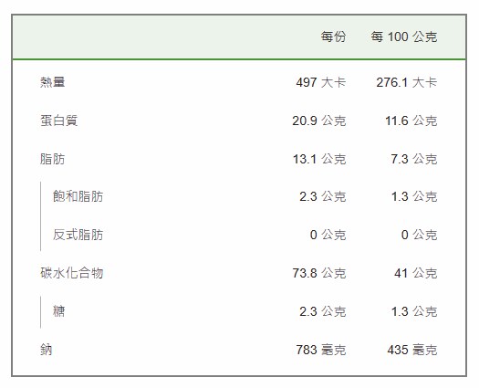 每一份量 180 公克