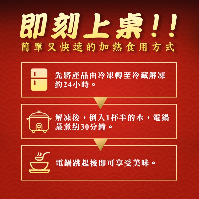 加熱方式:完全退冰後,蒸煮30分鐘即可