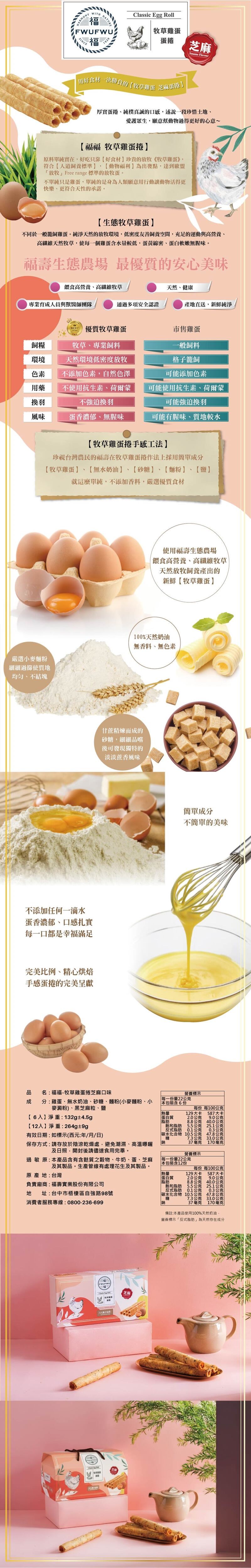 品       名:福福-牧草蛋芝麻蛋捲-6入盒裝 (單支包裝/新鮮、不沾手)