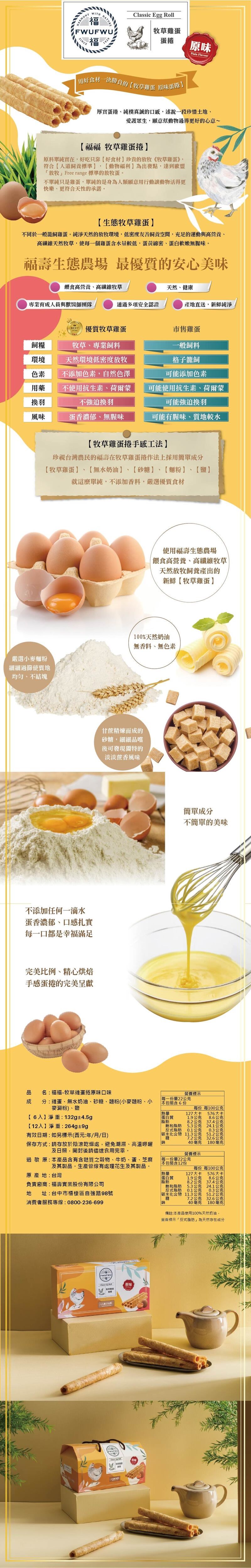 品       名:福福-牧草蛋原味蛋捲-6入盒裝 (單支包裝/新鮮、不沾手)