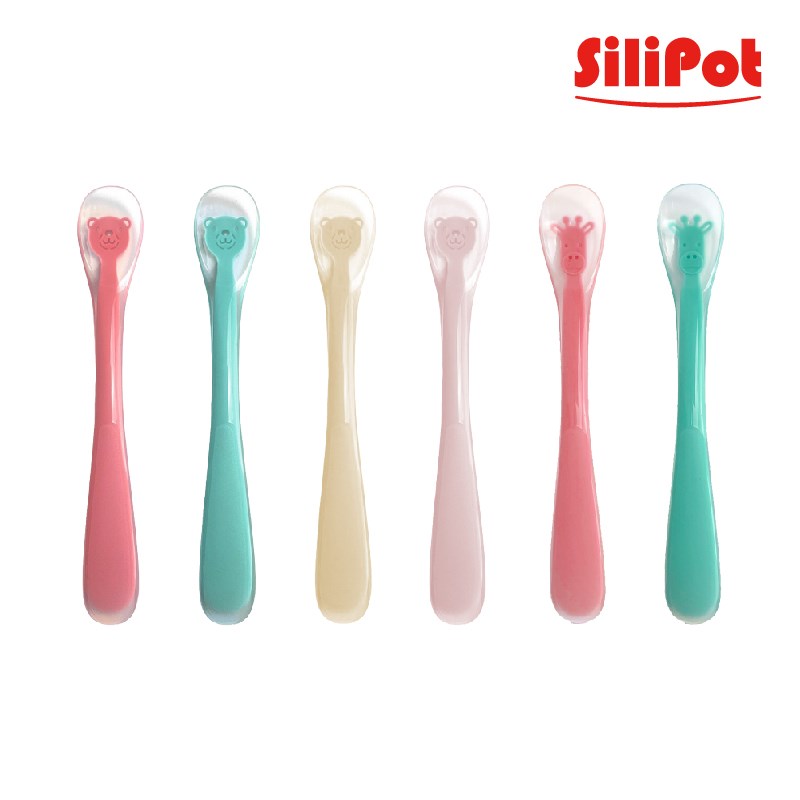 【韓國 SILIPOT】鉑金矽膠幼兒湯匙 熊讚 長頸鹿 附保存盒(可熱水消毒 防摔 仿奶嘴頭)
