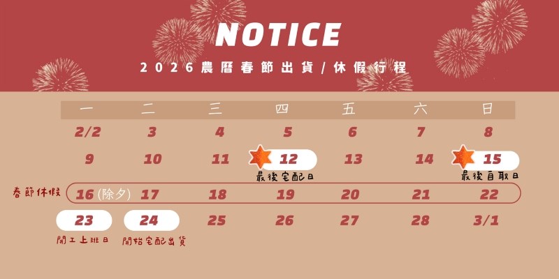* 若不備註寄出時間, 將以一般訂單出貨流程處理.