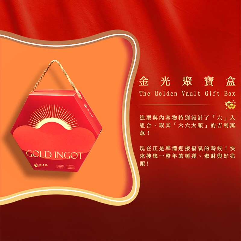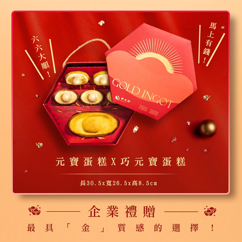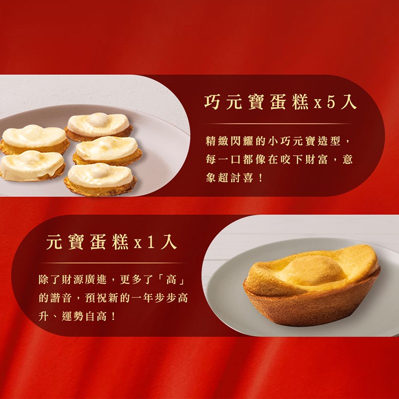 以元寶為主題,收入了六入元寶蛋糕做為聚財象徵,代表著六六大順,有馬上有錢的美好寓意貫穿其中!