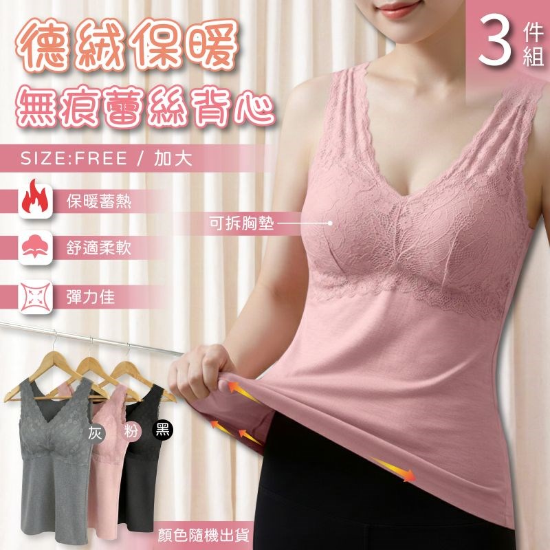 【卡妮兒】德絨保暖無痕蕾絲背心 FREE / 加大(混色3件組)