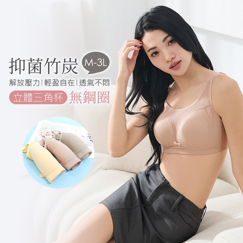 【黛瑪Daima】(L-XXXL)無鋼圈紓壓親膚透氣竹炭內衣-3色可選-5521