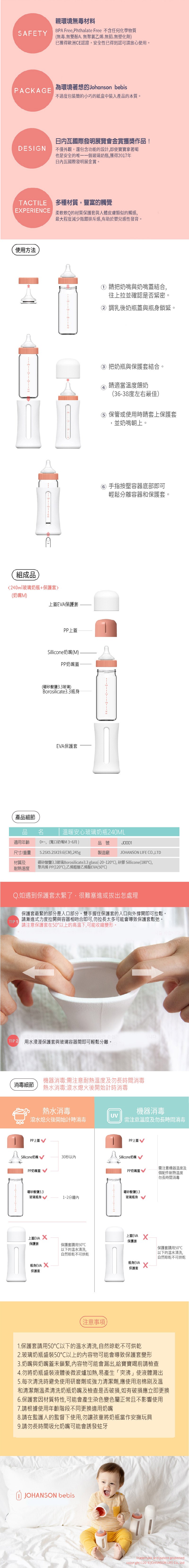 【限時搶購】韓國 JOHANSON頂級溫暖安心奶瓶240ML送禮大禮包