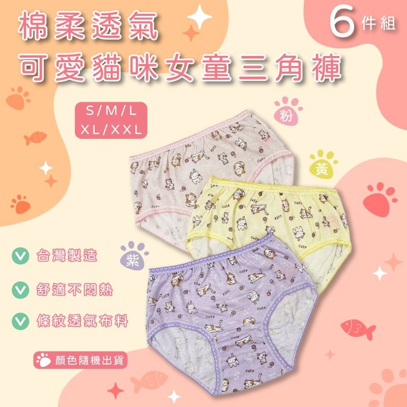 【卡妮兒】台灣製柔棉透氣可愛貓咪女童三角褲 S/M/L/XL/XXL(混色6件組)