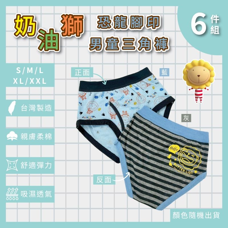 【卡妮兒】台灣製奶油獅恐龍腳印男童三角褲 S/M/L/XL/XXL(混色6件組)