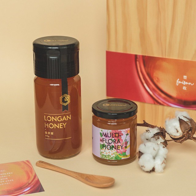 .禮盒內含龍眼蜜 700g、百花蜜 320g、蜂蜜木匙、小卡