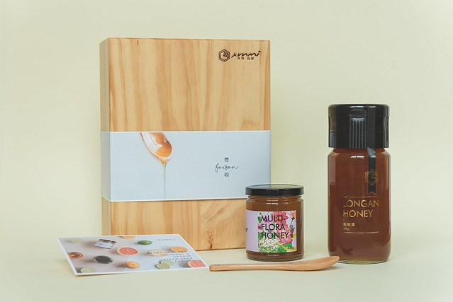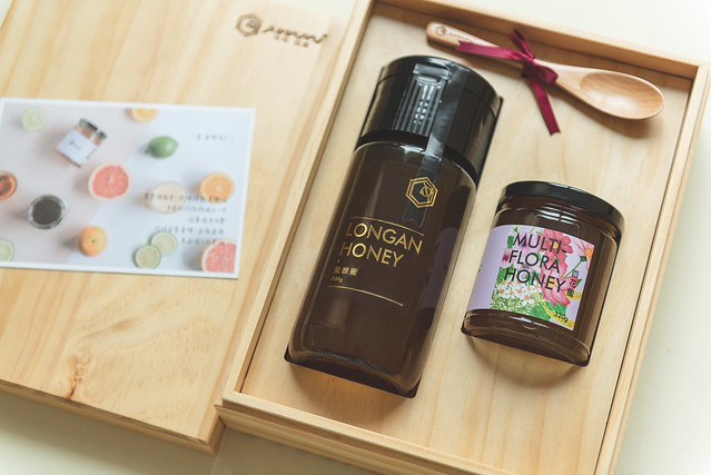 .禮盒內含荔枝蜜 700g、百花蜜 320g、蜂蜜木匙、小卡