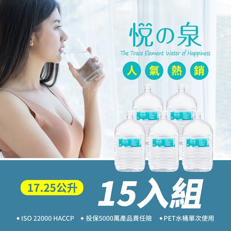 商品內容:悅之泉17.25公升桶裝水X15 (分次到貨)