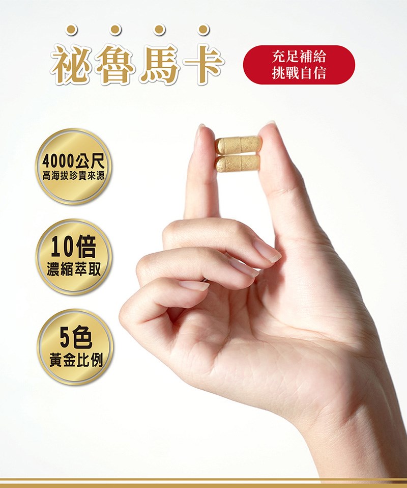 內容物成分:濃縮馬卡粉,L-精胺酸、透納樹(葉)抽出物、胺基酸螯合鋅、黑酵母發酵物