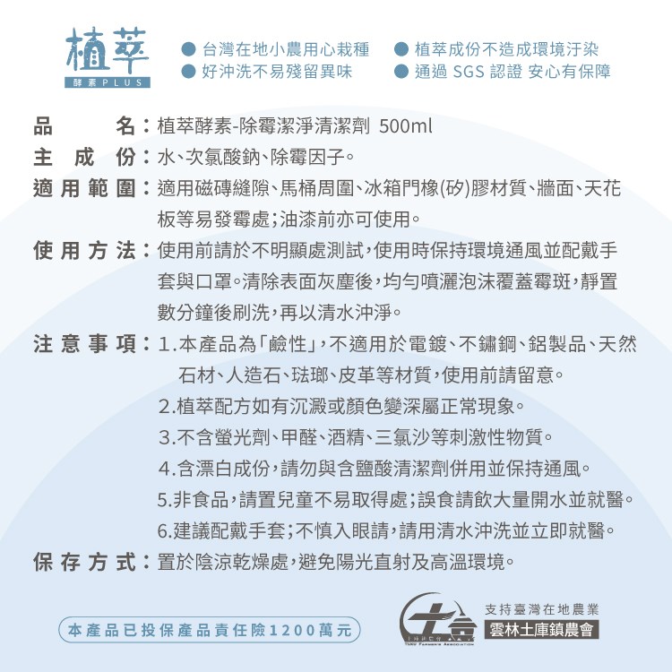 •獨家比例配方、強效去除霉菌