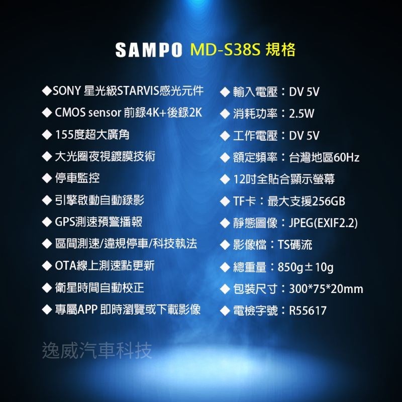 【SAMPO聲寶】MD-S38S 前4K 後2K Sony Starvis 星光級夜視