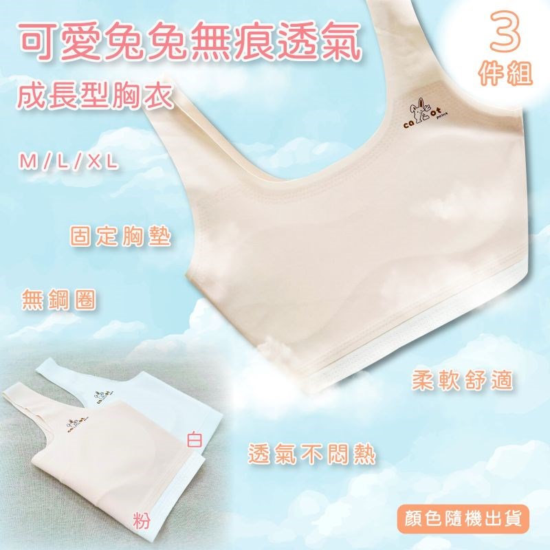 【卡妮兒】可愛兔兔無痕透氣成長型胸衣 M / L / XL(混色3件組)