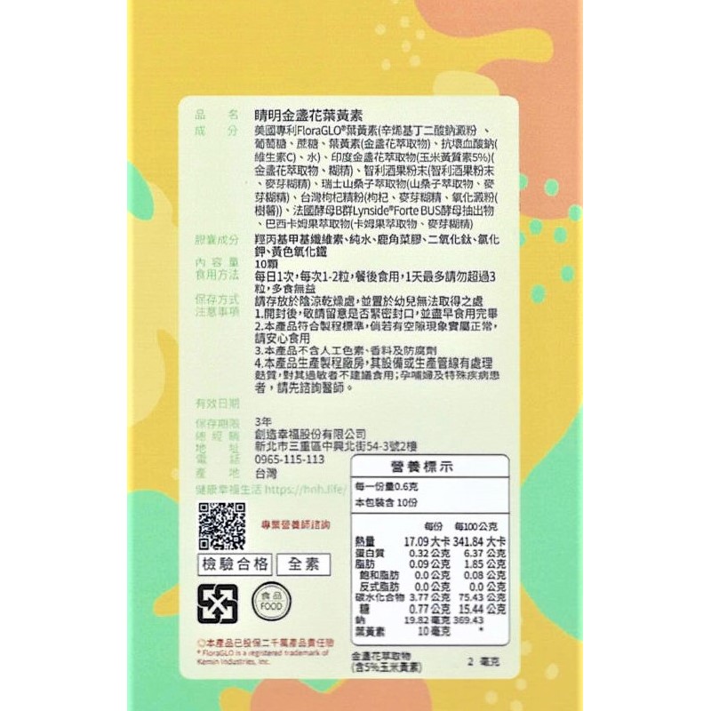 【健康幸福生活】睛明金盞花葉黃素(全素) 10顆/包