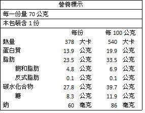 過敏原資訊:本產品含有堅果及芝麻,不適合對其過敏體質者食用。
