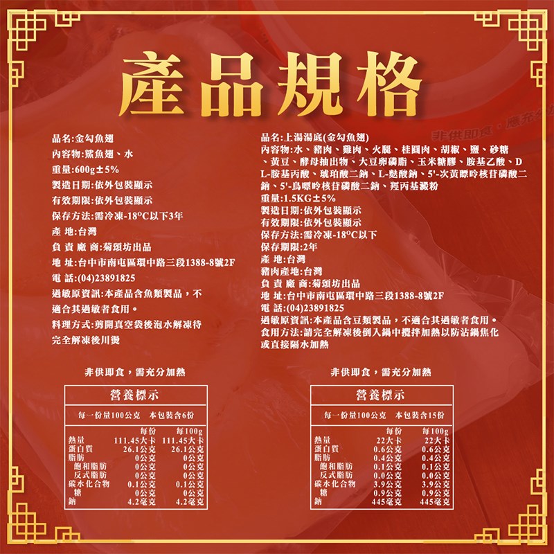 【菊頌坊】金勾魚翅禮盒(2100g/組);1/7起依訂單陸續出貨