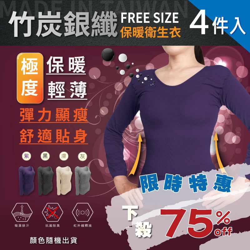 【卡妮兒】限時特惠25折 冬季必備 台灣製竹炭銀纖維保暖衛生衣 FREE (混色4件組)