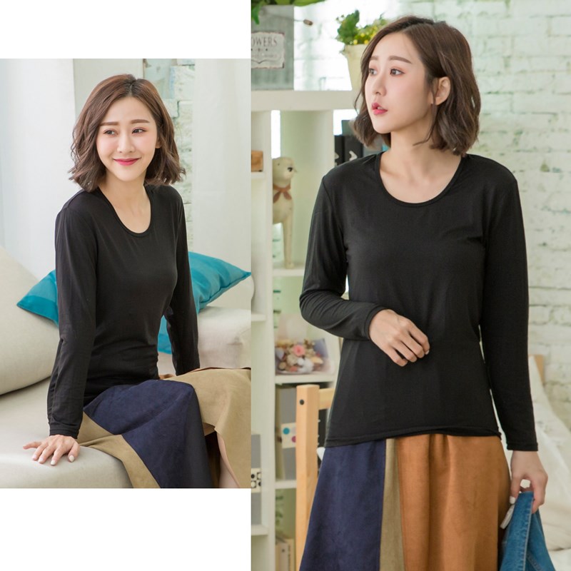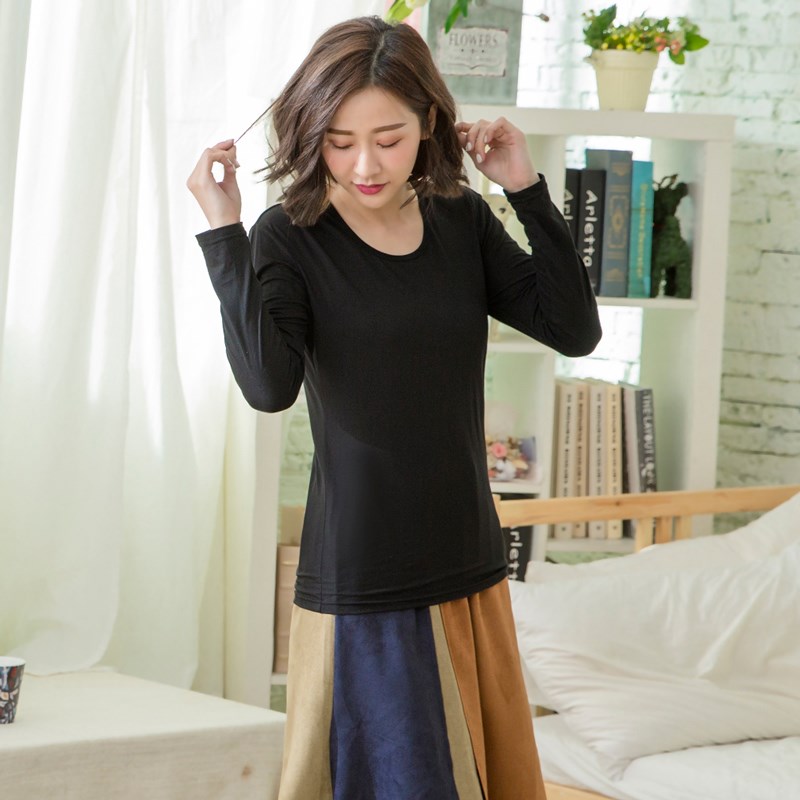 【黛瑪Daima】女圓領蓄熱磨毛彈性保暖長袖上衣(四色可選)-6139