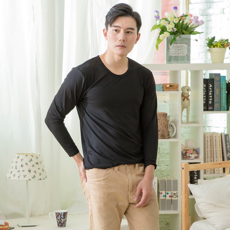【黛瑪Daima】男生圓領蓄熱磨毛彈性保暖長袖上衣(四色可選) -5139