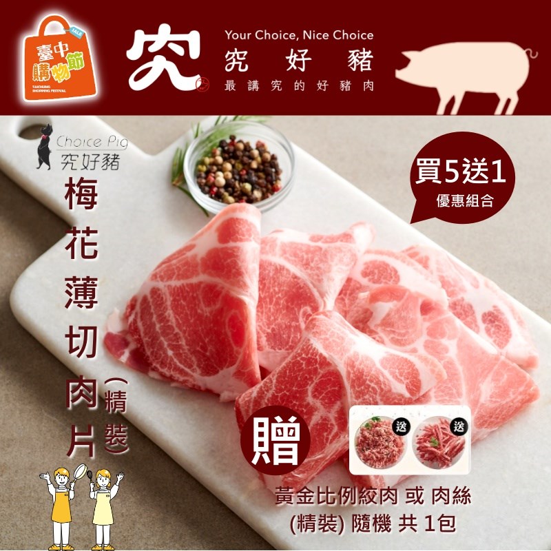 【究好豬】台中購物節 梅花薄切肉片(精裝)X5包(買5送1(隨機))