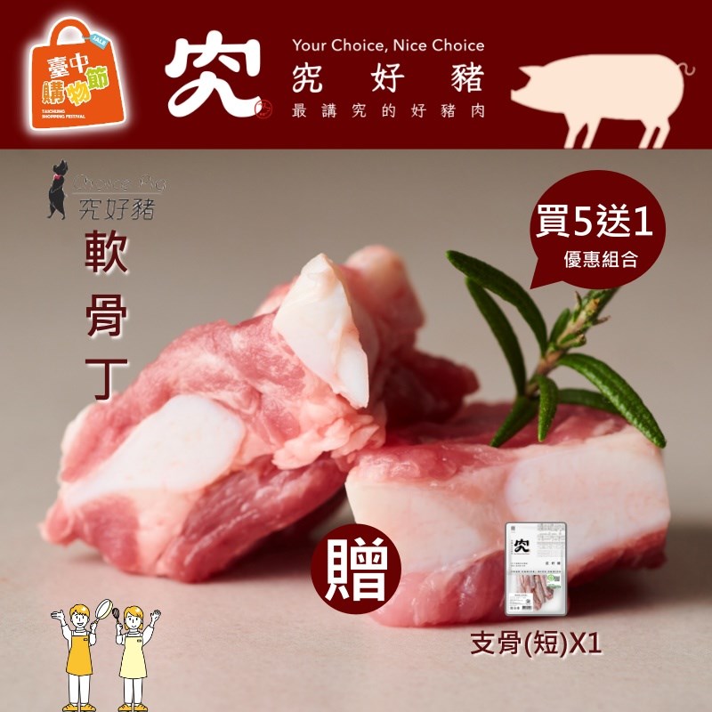 【究好豬】台中購物節 軟骨丁X5包(買5送1(支骨))