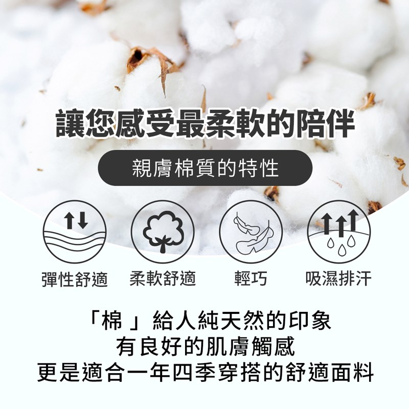 • 抑菌/乾爽/吸濕/親膚