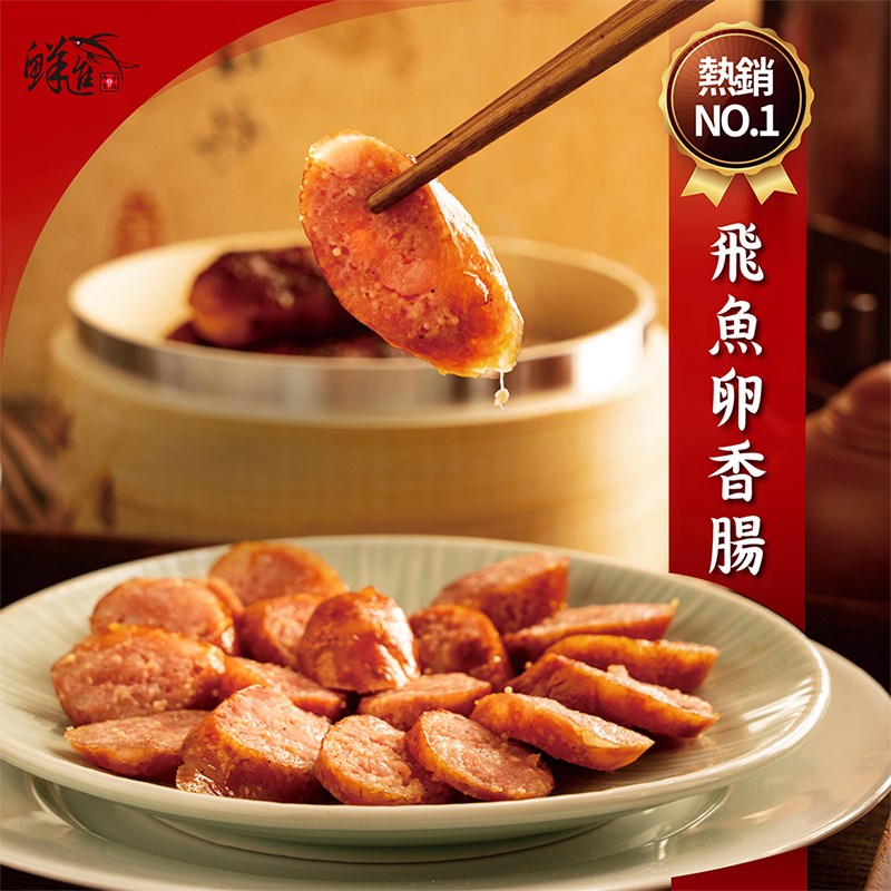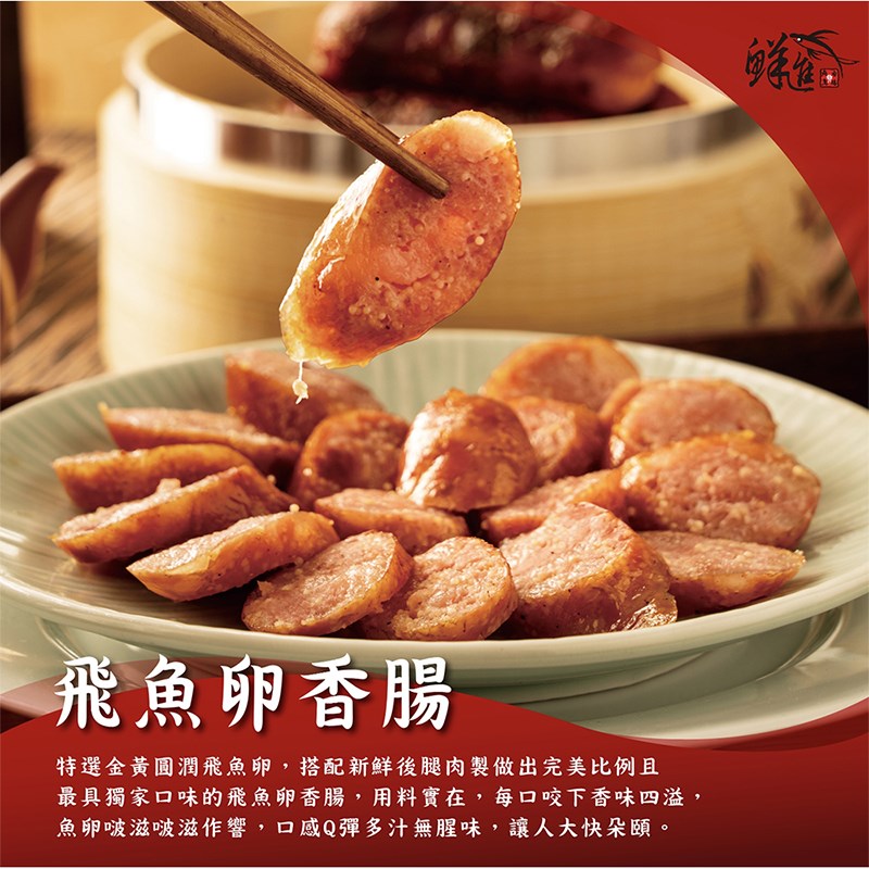 鮮進香腸嚴選優質飛魚卵,粒粒晶透、口感鮮脆。每一口香腸,外層鮮香多汁,內裡「啵啵」爆開的飛魚卵,帶來驚喜的層次口感。