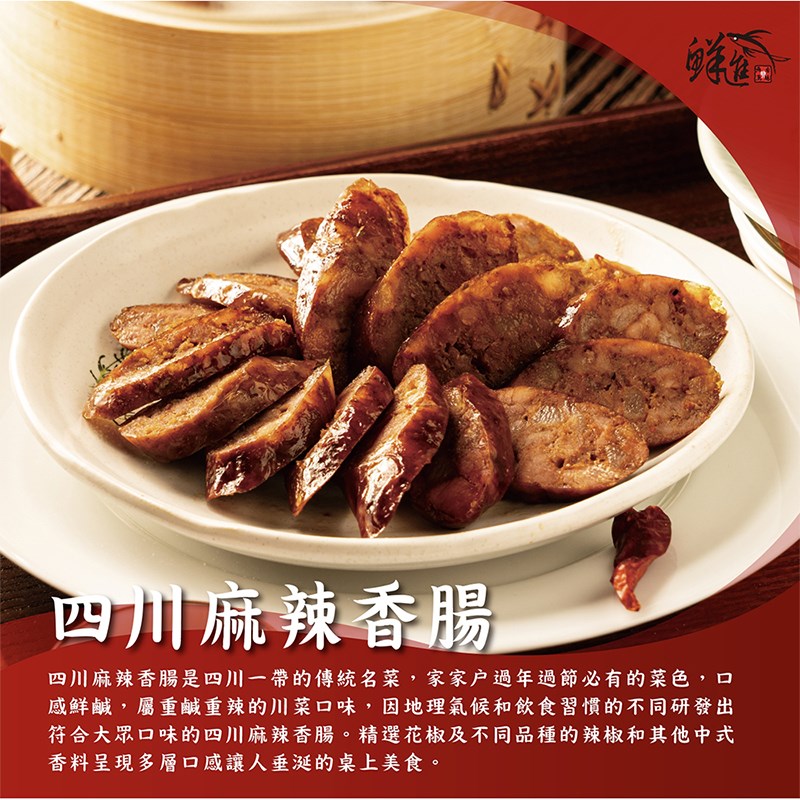 鮮進香腸嚴選上等豬肉,融合四川花椒的麻香與朝天椒的辣勁,火候恰到好處,讓香氣層層疊加。入口時先感受花椒的麻香電流,隨後辣味勁道直衝味蕾,最後以肉汁的鮮甜收尾,形成麻、辣、鮮的完美平衡。