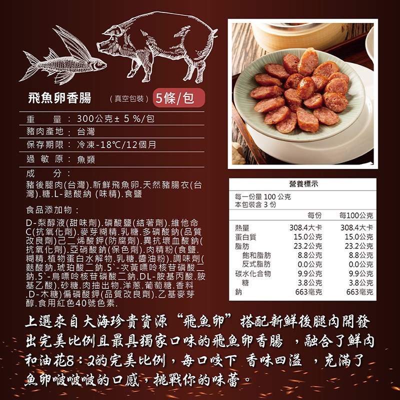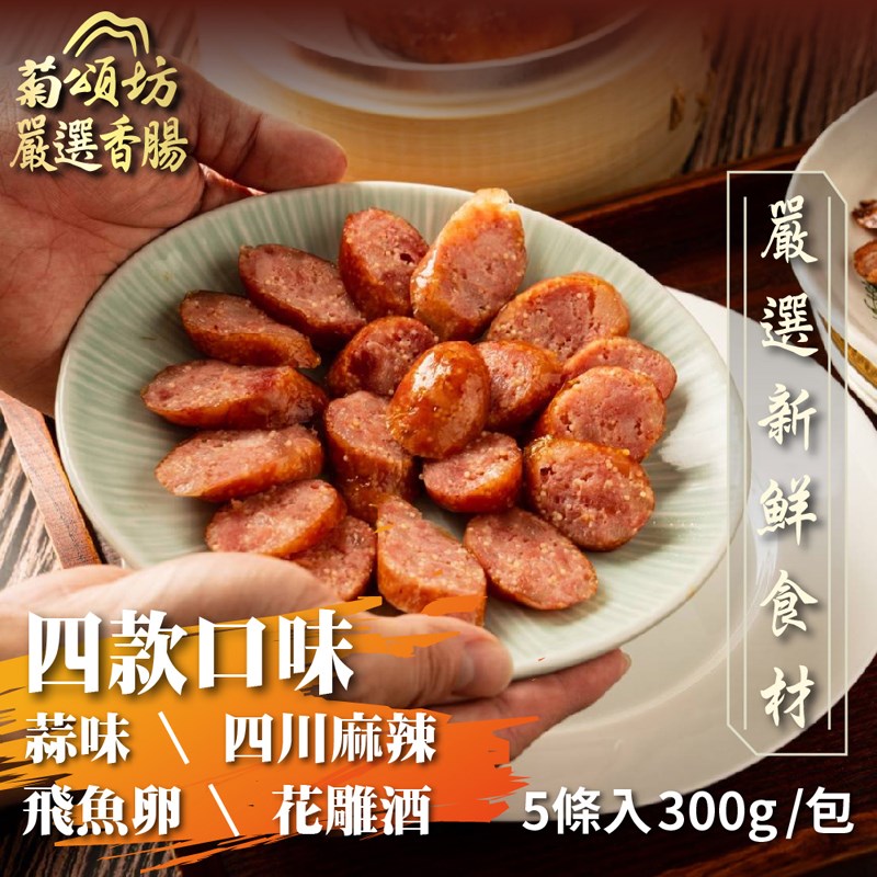 【菊頌坊】飛魚卵香腸/蒜味香腸/四川麻辣香腸/花雕酒香腸(300g/包)任選4包