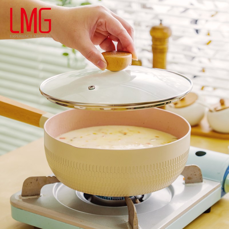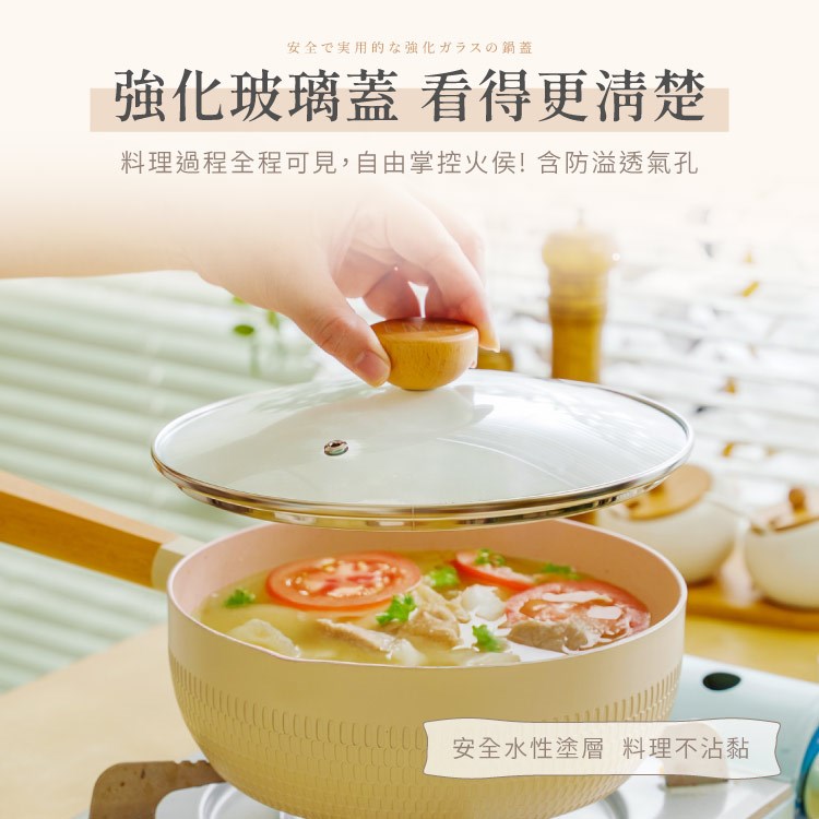 材質:鋁合金、櫸木防燙手把+玻璃鍋蓋