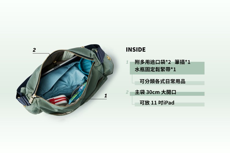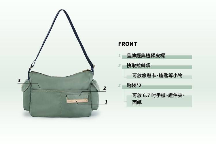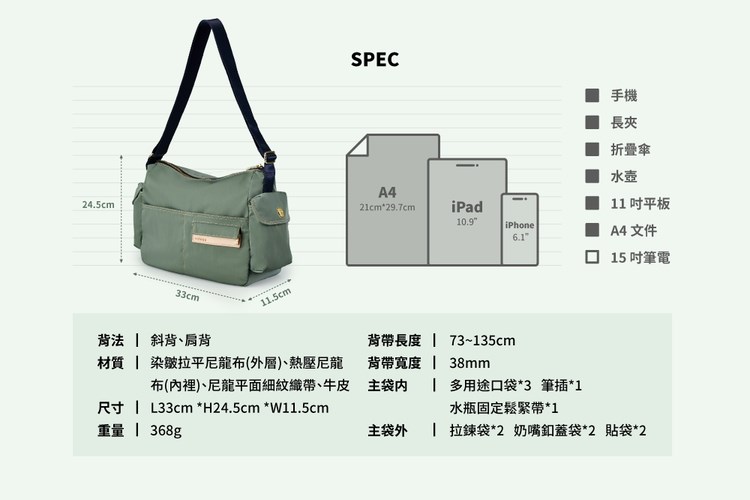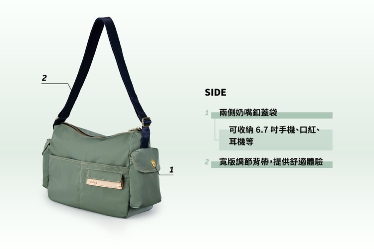 ▪兩側奶嘴釦蓋袋,可放6.7吋手機