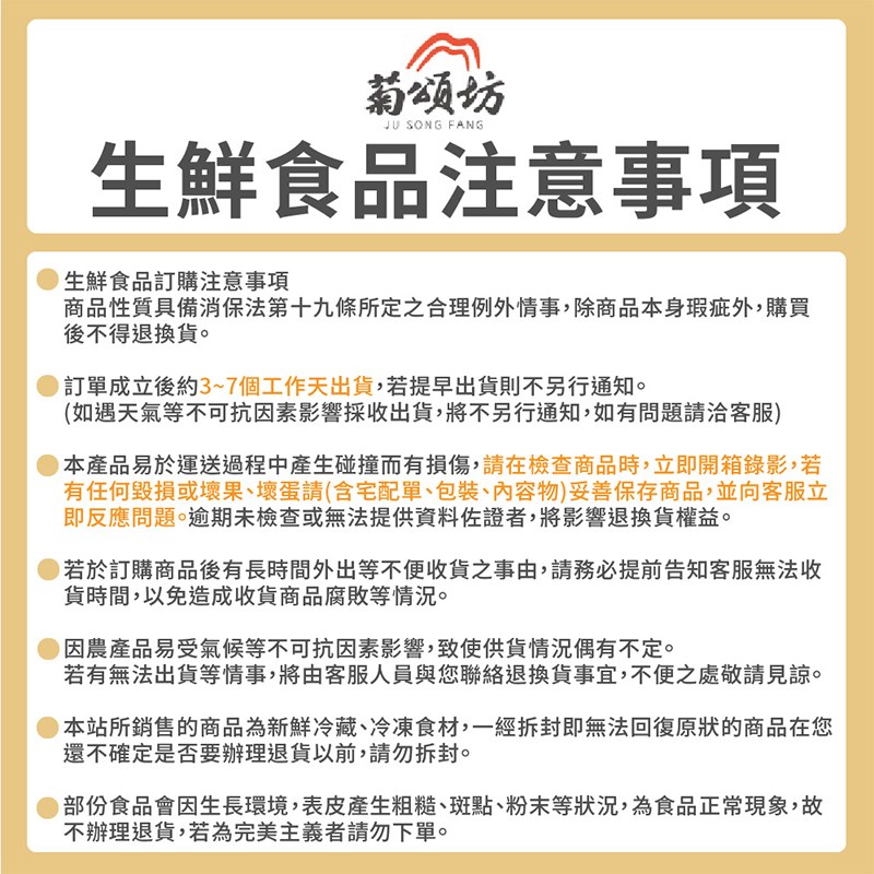 ►配送過程可能造成些微果損,小枝傷、磨擦痕跡、小瘀傷屬正常範圍,可接受者再下單