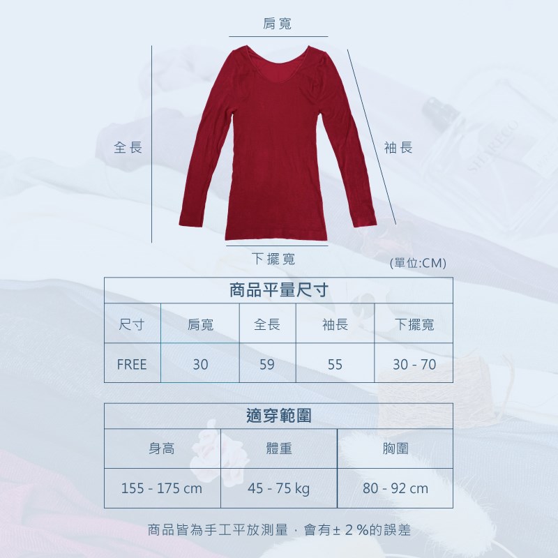 適穿範圍:身高 155-175cm|體重 45-75kg|胸圍 80-92cm