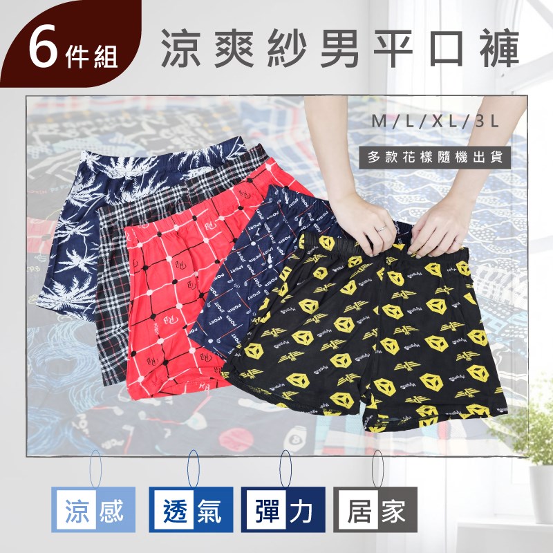 【卡妮兒】超酷涼感男平口褲 M / L / XL / 3L (混色6件組)