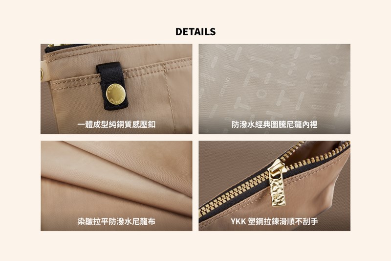 ▪ 內裡採防潑水熱壓尼龍,耐用好清洗