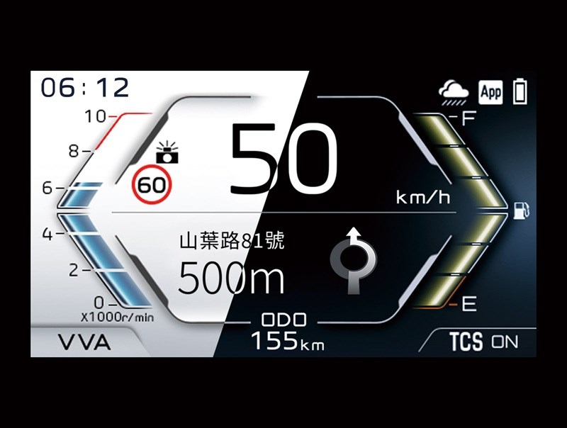 採用全彩儀表成色鮮豔細膩,並搭載正負顯自動切換功能,能對應不同情境,連結手機可顯示多樣資訊(電話、訊息、速限等)。更可使用專屬導航地圖,全面提升實用與便利性。