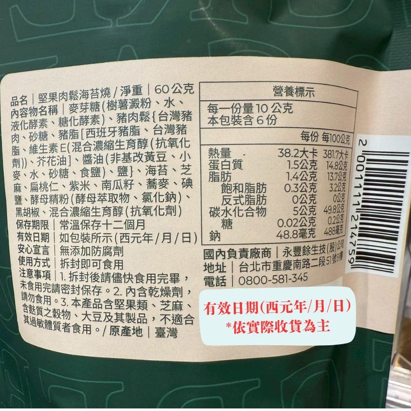 期間限定,下單即贈堅果肉鬆海苔燒一包。(數量有限,送完為止)