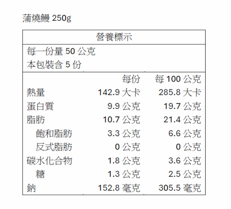 商品名稱:蒲燒鰻