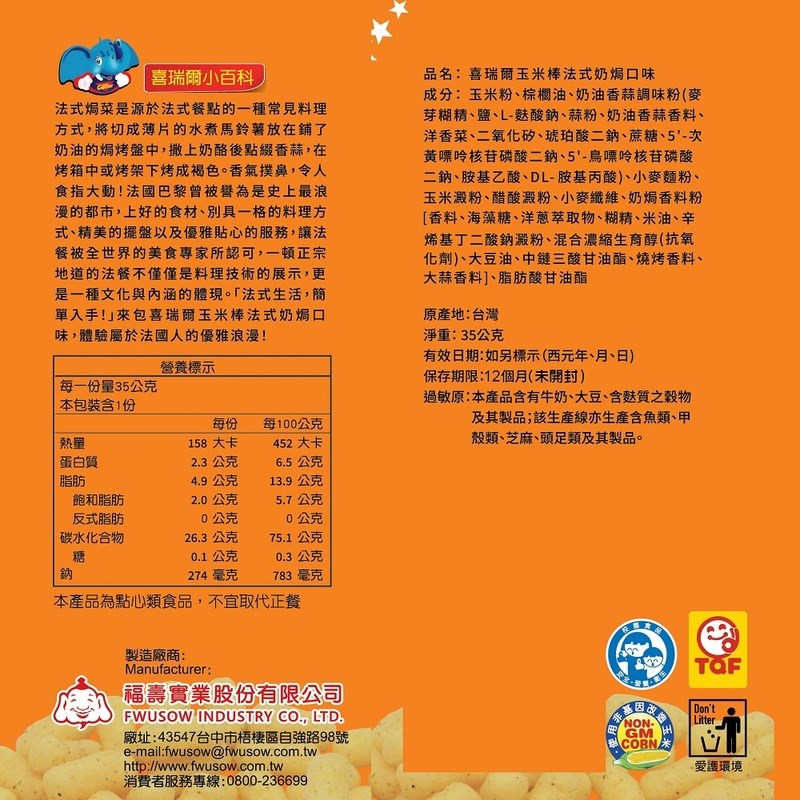 【喜瑞爾】校園食品 法式奶焗口味玉米棒 35g/包 (30包/箱)