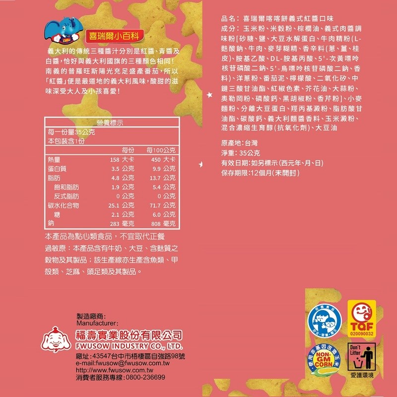 【喜瑞爾】校園食品 義式紅醬口味喀喀餅 35g/包 (30包/箱)
