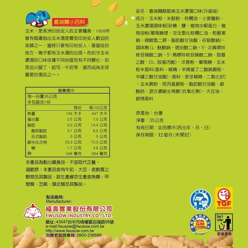 【喜瑞爾】校園食品 玉米濃湯酥脆條 35g/包 (30包/箱)