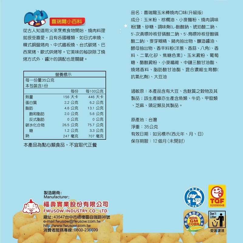【喜瑞爾】校園食品 燒肉口味玉米棒 35g/包 (30包/箱)