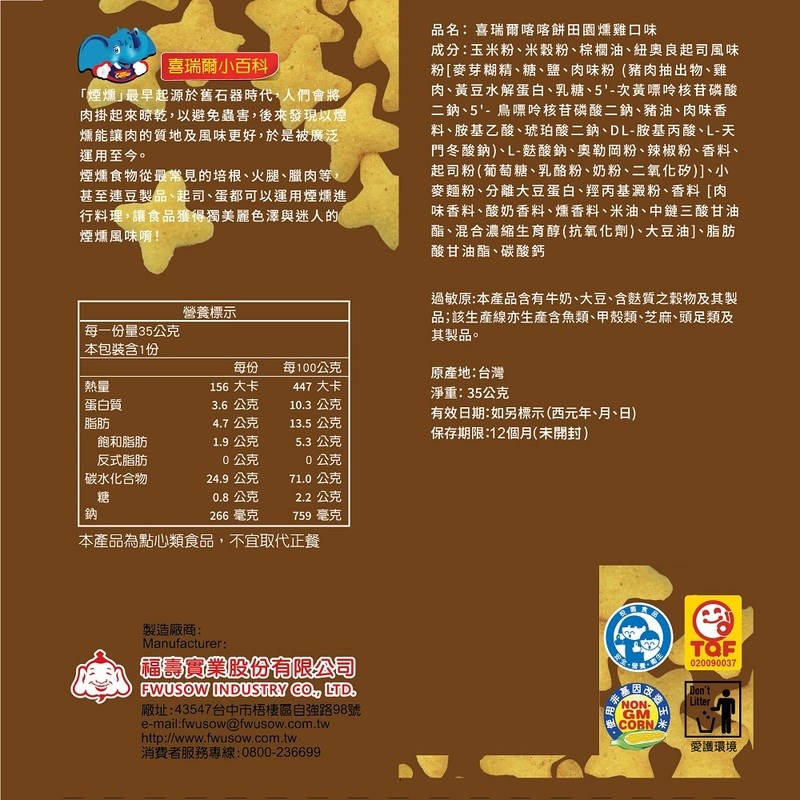 【喜瑞爾】校園食品 田園燻雞口味喀喀餅 35g/包 (30包/箱)