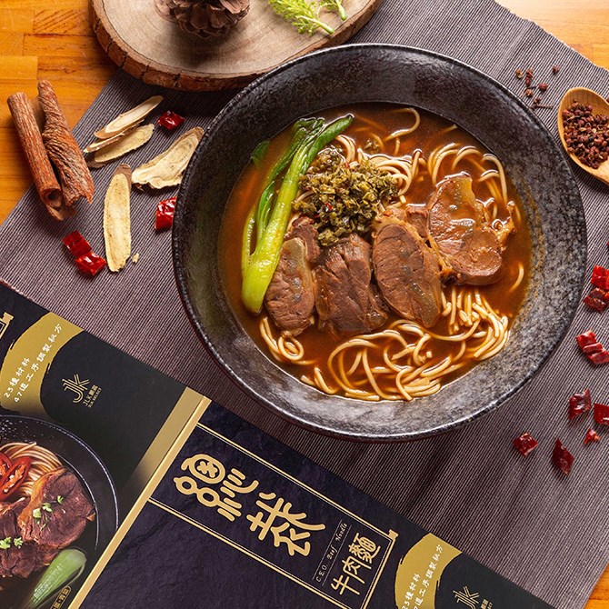• 將麵條拆袋放入滾水中,充分攪拌,烹煮約5分鐘,撈起放入碗中,再倒入已經充份加熱的「牛肉料理包」,可依個人喜好自行加入蔥花等配料。