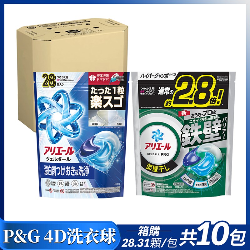品名:P&G Ariel 4D PRO洗衣球補充包 (強力解垢28顆/室晾消臭31顆)