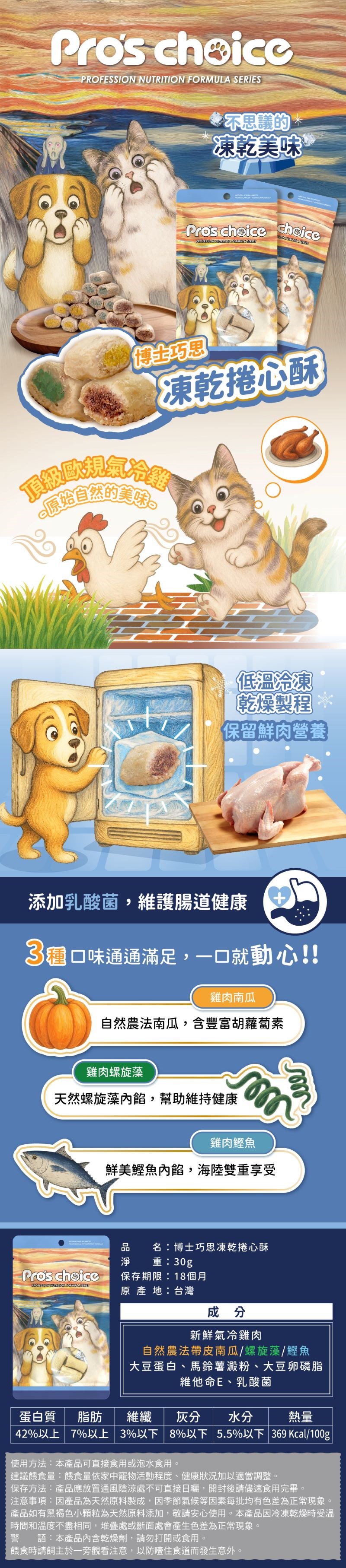 營養乾糧:脫水雞肉、豌豆、脫水牛肉、馬鈴薯、家禽油脂(維生素E保存)、乾燥甜菜、乾燥海藻 酵母粉、絲蘭萃取物、卵磷脂、複合益生菌(嗜乳酸桿菌、雙叉乳酸桿菌)、維生素A、維生素D、維 生素E、維生素B1、核黃素、維生素B6、維生素B12、菸鹼酸、氯化膽鹼、泛酸鈣、葉酸、生物素、碘 酸鈣、胺基酸鐵、胺基酸鋅、胺基酸銅、胺基酸錳、酵母硒。