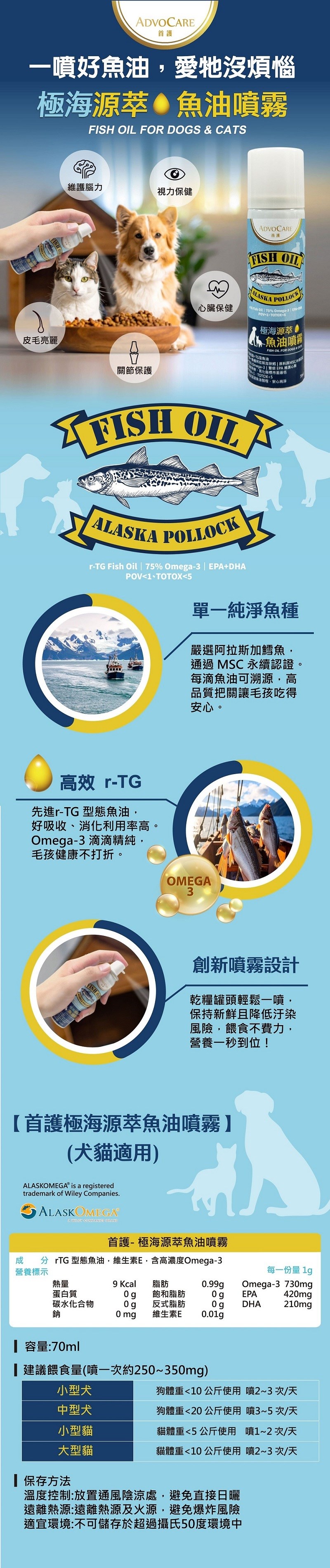 注意事項:已使用噴霧魚油之乾糧或罐頭食品請儘快食 用完畢,勿隔餐餵食,以確保新鮮
