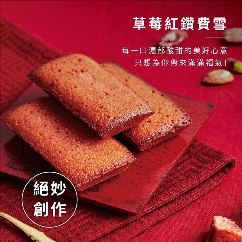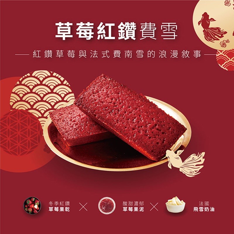 成分::奶油、殺菌液蛋、草莓果乾、砂糖、低筋麵粉、草莓泥(草莓、轉化糖漿)、紅麴粉、無鋁泡打粉 (磷酸二氫鈣、碳酸氫鈉、玉米粉)、檸檬汁